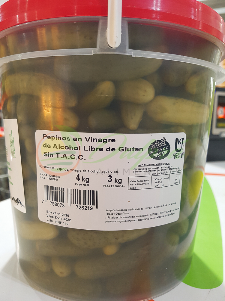 Presentamos los pepinos en vinagre de alcohol en las siguientes confecciones: